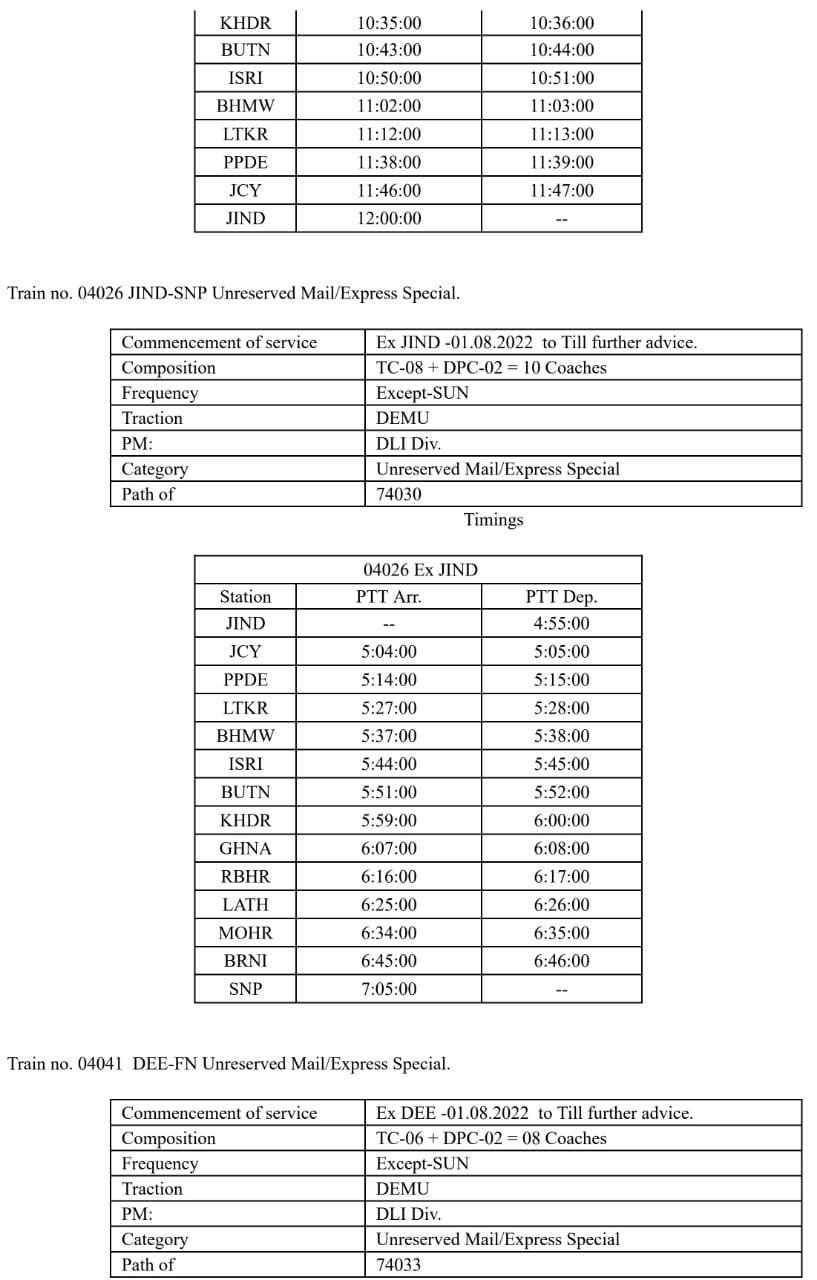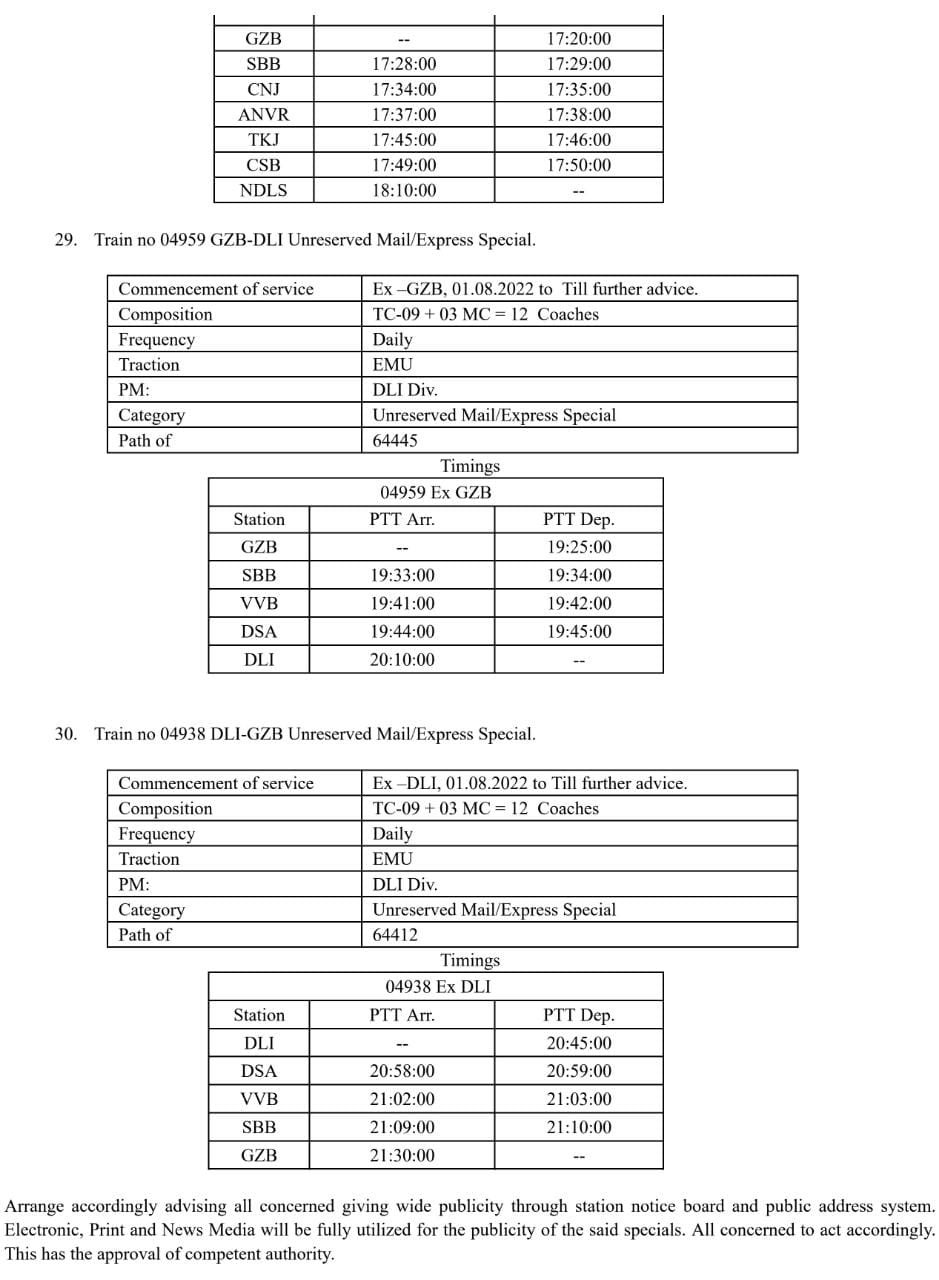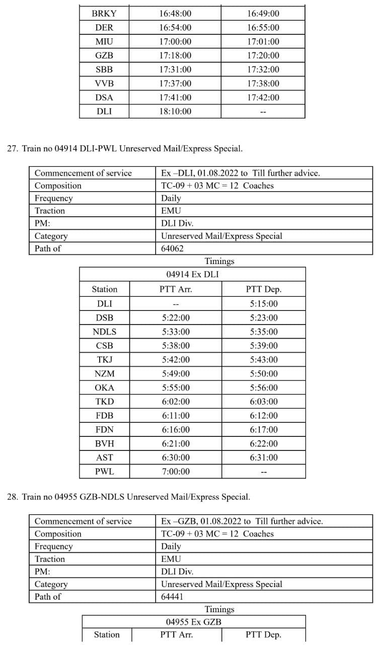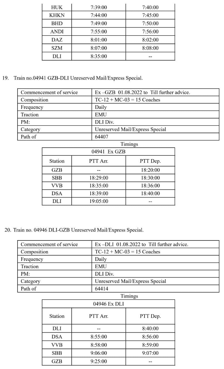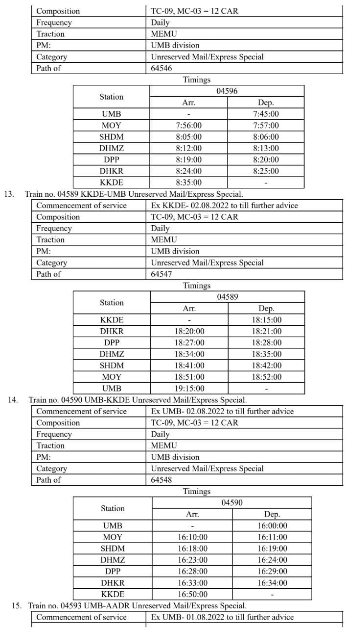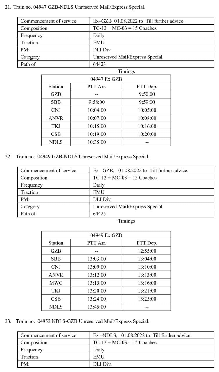 हाल ही में रेल प्रशासन ने जो संक्रमनकाल मे रद्द की हुई गाड़ियोंको पुनर्बहाली करने का जो निर्णय लिया था उसी आधार पर उत्तर रेलवे निम्नलिखित गाड़ियोंको शरू करने जा रहा है।