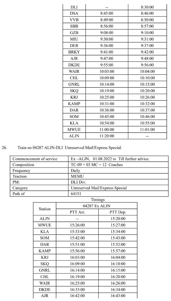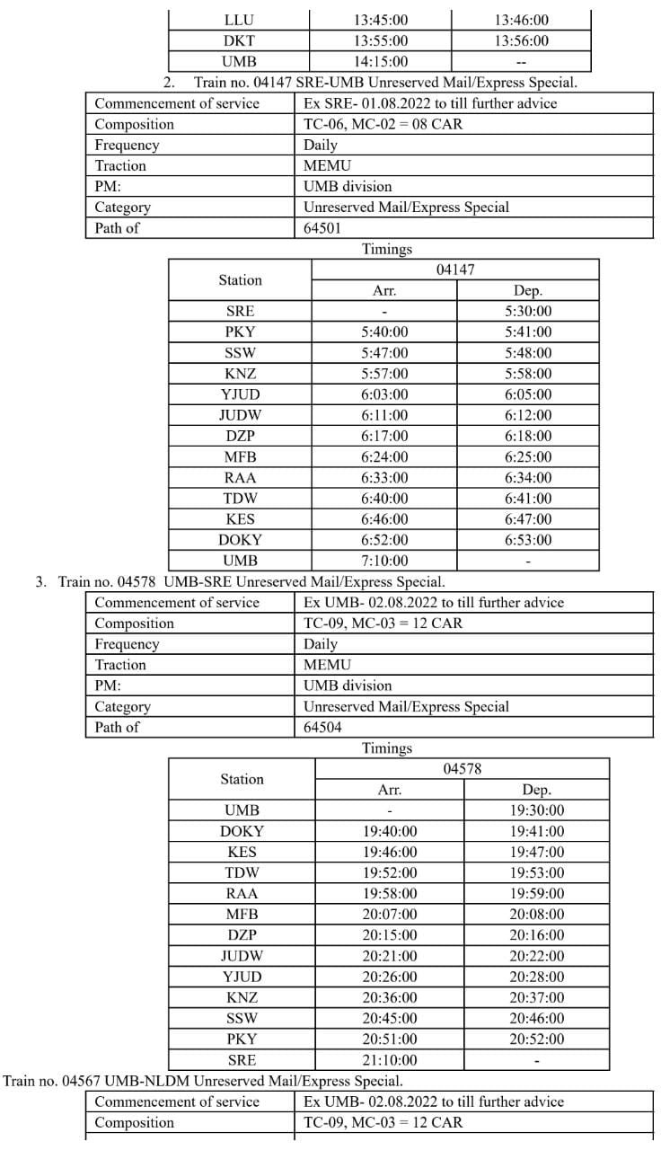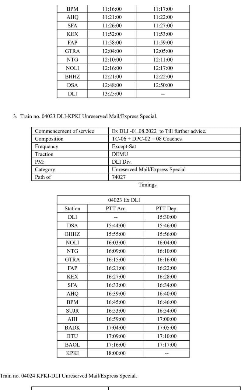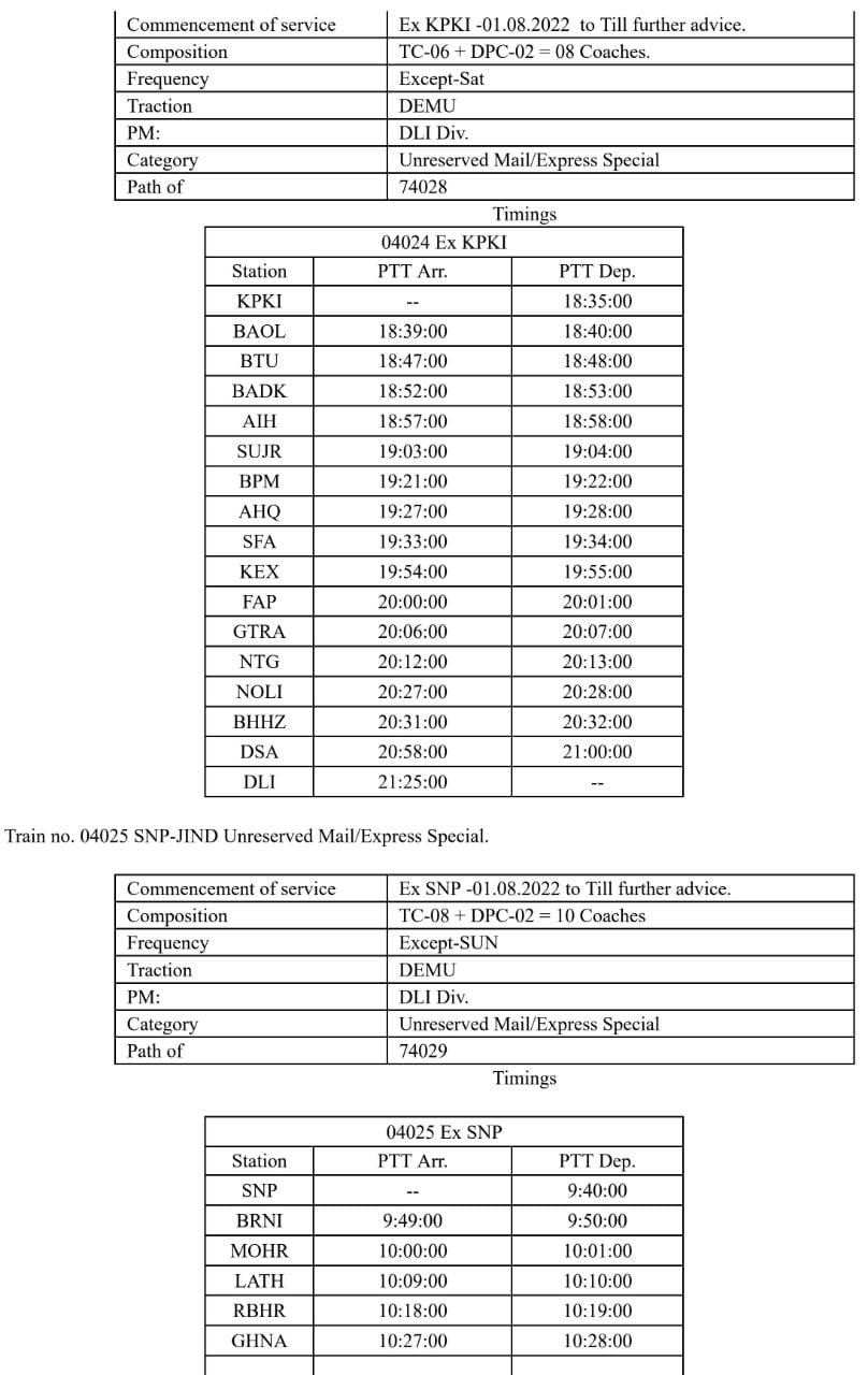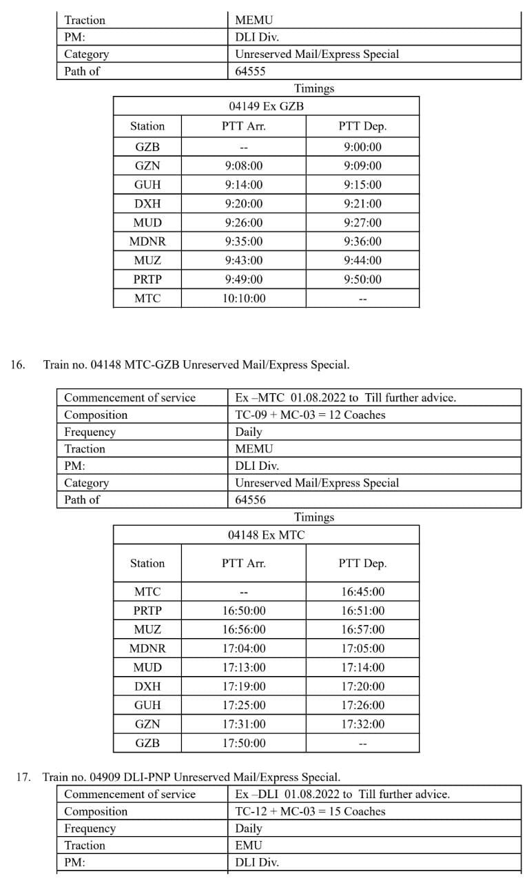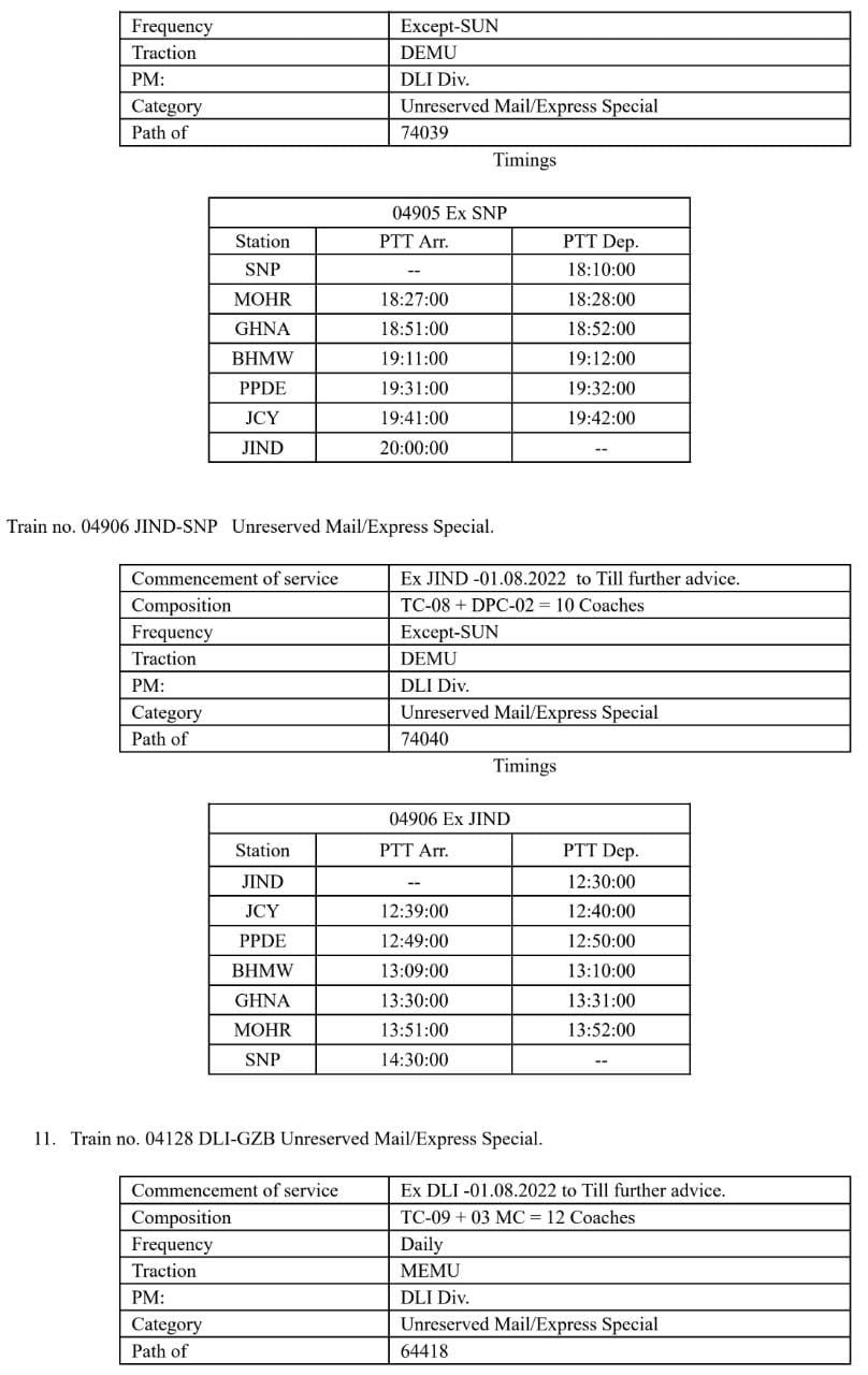 हाल ही में रेल प्रशासन ने जो संक्रमनकाल मे रद्द की हुई गाड़ियोंको पुनर्बहाली करने का जो निर्णय लिया था उसी आधार पर उत्तर रेलवे निम्नलिखित गाड़ियोंको शरू करने जा रहा है।