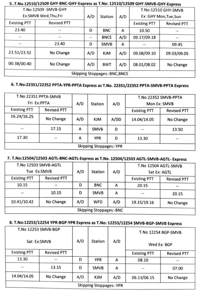 टर्मिनल बदलाव के चलते इन आठ गाड़ियोंकी समयसारणी में जो मामूली बदलाव हो रहा है वह निम्नप्रकार से है।