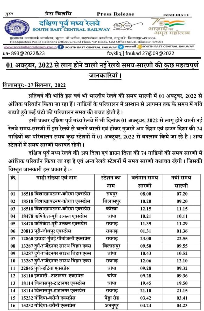 Uncategorisedनई समयसारणी 2022 : SECR दपुमरे की कुछ झलकियाँ 27th Sep 2022 Rail Duniya Share this: Click to share on WhatsApp (Opens in new window) WhatsApp Click to share on X (Opens in new window) X Click to share on Facebook (Opens in new window) Facebook Click to share on Telegram (Opens in new window) Telegram Click to email a link to a friend (Opens in new window) Email Like Loading... Related Published by Rail Duniya Rail Duniya is a magazine publishing all India train timings since 1988. View all posts by Rail Duniya