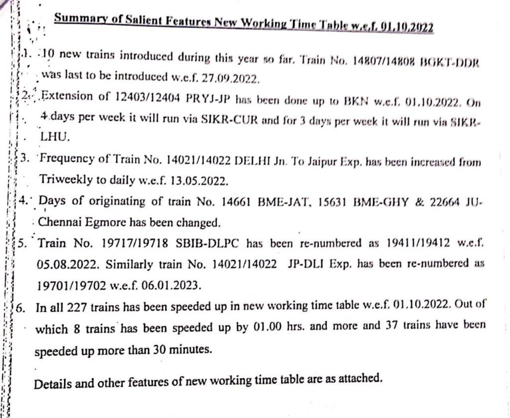 Uncategorisedनई समयसारणी 2022 : उपरे NWR की कुछ झलकियाँ 29th Sep 2022 Rail Duniya Share this: Click to share on WhatsApp (Opens in new window) WhatsApp Click to share on X (Opens in new window) X Click to share on Facebook (Opens in new window) Facebook Click to share on Telegram (Opens in new window) Telegram Click to email a link to a friend (Opens in new window) Email Like Loading... Related Published by Rail Duniya Rail Duniya is a magazine publishing all India train timings since 1988. View all posts by Rail Duniya