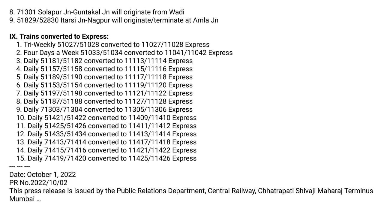 Uncategorisedनई समयसारणी 2022 : मध्य रेल CR की झलकियाँ 2nd Oct 20222nd Oct 2022 Rail Duniya Share this: Click to share on WhatsApp (Opens in new window) WhatsApp Click to share on X (Opens in new window) X Click to share on Facebook (Opens in new window) Facebook Click to share on Telegram (Opens in new window) Telegram Click to email a link to a friend (Opens in new window) Email Like Loading... Related Published by Rail Duniya Rail Duniya is a magazine publishing all India train timings since 1988. View all posts by Rail Duniya
