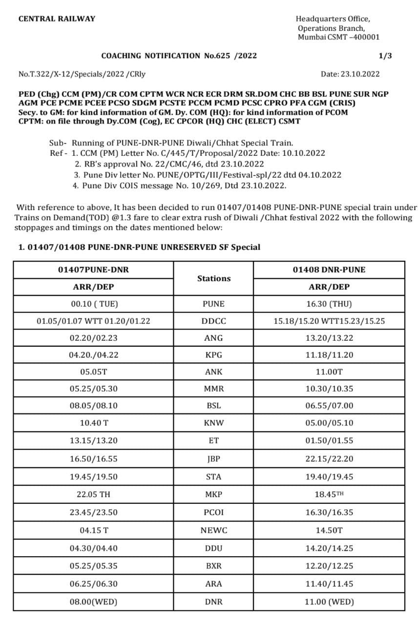 Uncategorisedपुणे – दानापुर – पुणे के बीच मध्य रेल की दो विशेष गाड़ियाँ 23rd Oct 2022 Rail Duniya Share this: Click to share on WhatsApp (Opens in new window) WhatsApp Click to share on X (Opens in new window) X Click to share on Facebook (Opens in new window) Facebook Click to share on Telegram (Opens in new window) Telegram Click to email a link to a friend (Opens in new window) Email Like Loading... Related Published by Rail Duniya Rail Duniya is a magazine publishing all India train timings since 1988. View all posts by Rail Duniya