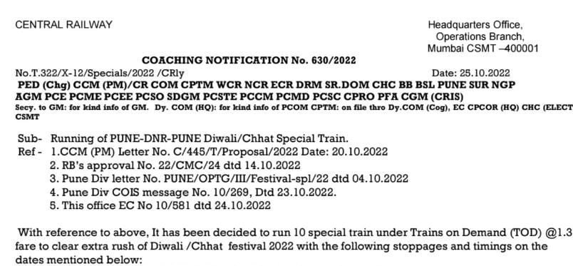 01411/12 मुम्बई दानापुर मुम्बई अनारक्षित विशेष