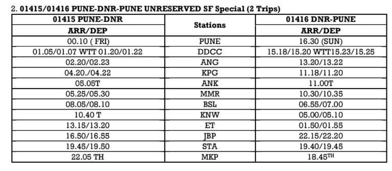 01415/16 पुणे दानापुर पुणे अनारक्षित विशेष
