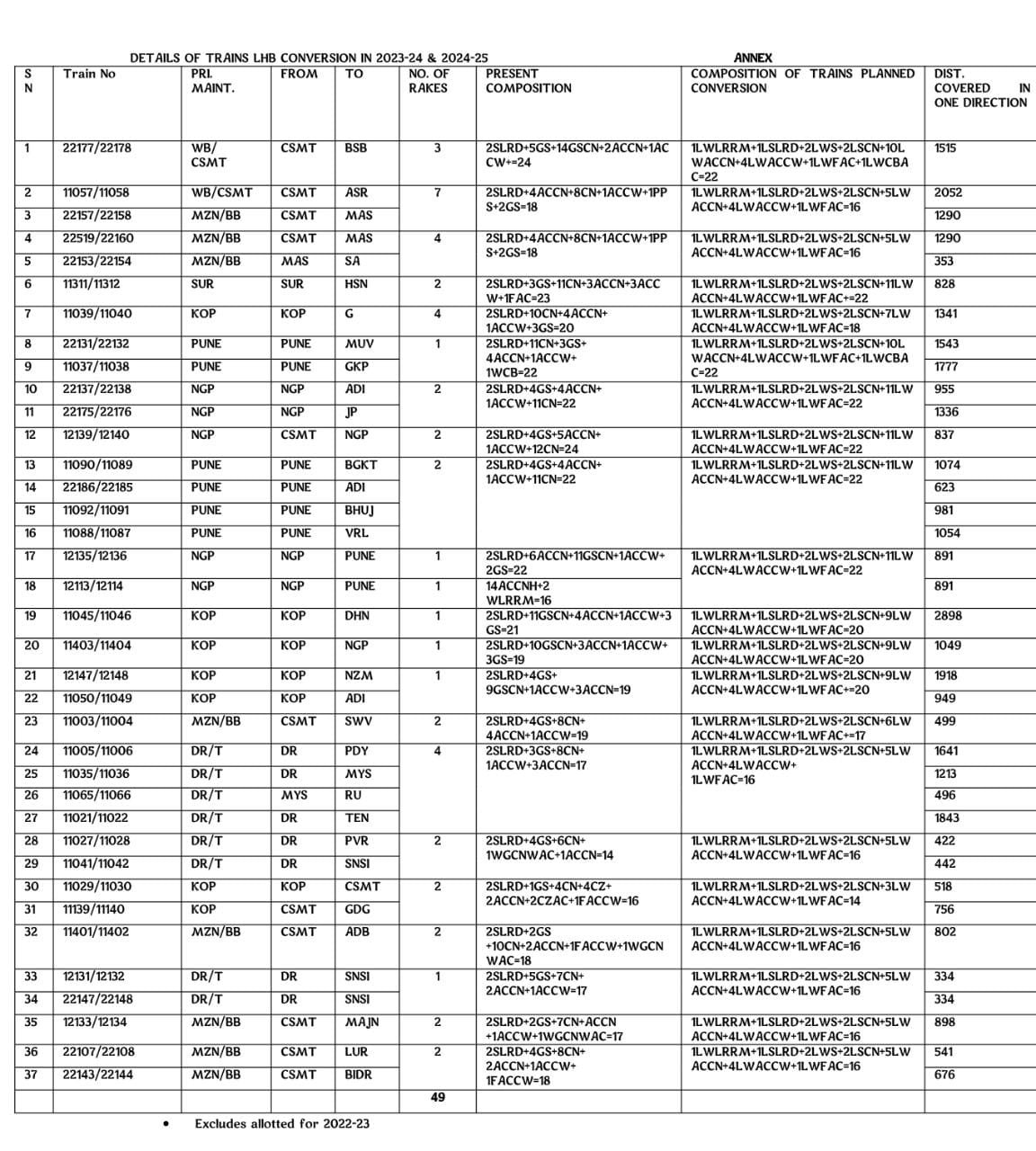 जरा सूची पे नजर डालियेगा, आप चौक जाओगे। मुम्बई अमृतसर के बीच चलनेवाली 11057/58, कोल्हापुर गोंदिया के बीच चलनेवाली 11039/40 महाराष्ट्र एक्सप्रेस, 12139/40 मुम्बई नागपुर मुम्बई सेवाग्राम एक्सप्रेस, दादर साईं नगर शिर्डी के बीच चलनेवाली 3 जोड़ी गाड़ियाँ यह ऐसी गाड़ियाँ है जिनमे बहुतसे यात्री कम दूरी की यात्रा करनेवाले द्वितीय श्रेणी के टिकटधारी होते है। हालिया स्थिति यह है, इन गाड़ियोंमे 4 – 4 कोच द्वितीय श्रेणी के है, 6 से 10 कोच शयनयान के है जो बारों मास फुल्ल रहते है। प्रतिक्षासूची लगी रहती है और द्वितीय श्रेणी अनारक्षित में पग धरने की जगह तक नही रहती।