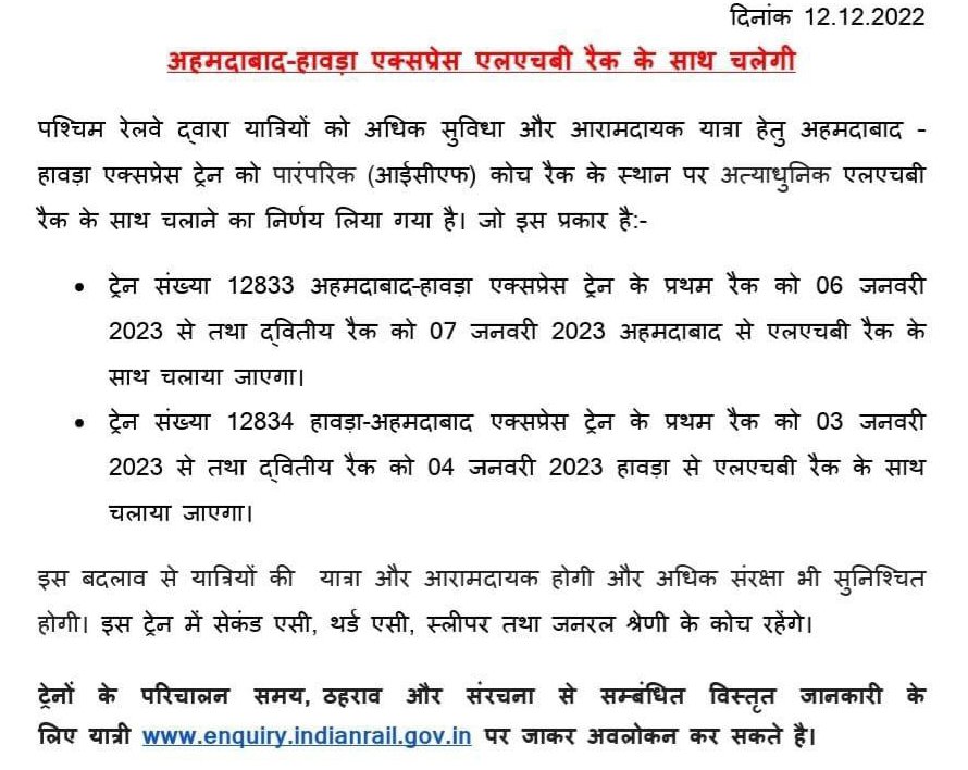 LHB कोच भारतीय रेल के अत्याधुनिक रेल कोच है, जो हाई स्पीड, शॉक प्रूफ एवं अद्यायावत सुरक्षा प्रणाली से समृद्ध है। यात्री क्षमता तकरीबन 10 प्रतिशत ज्यादा होती है। डिस्क ब्रेक और गाड़ी में यात्री को आरामदायक यात्रा का एहसास होता है।