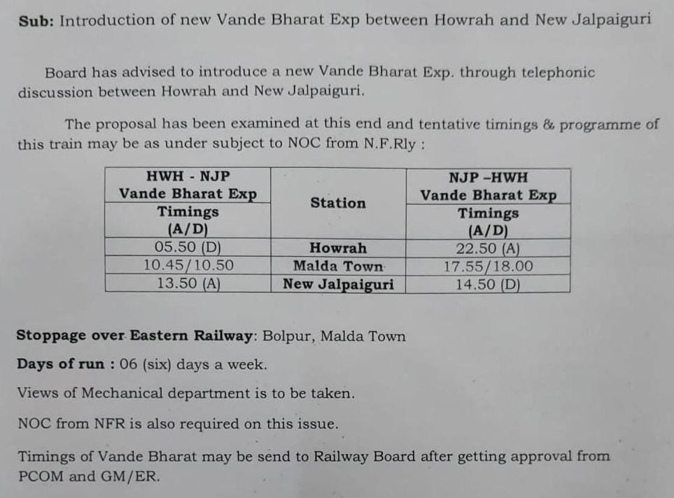 Uncategorisedसांतवी सम्भावित ‘वन्देभारत’ एक्सप्रेस 30 दिसम्बर से शुरू हो सकती है। 22nd Dec 202222nd Dec 2022 Rail Duniya पूर्व रेल ER में हावडा – न्यू जलपाईगुड़ी के बीच सप्ताह में छह दिन चलाई जाने वाली वन्देभारत एक्सप्रेस की तैयारियॉं ज़ोरोंपर है। RailPost से साभार Share this: Click to share on WhatsApp (Opens in new window) WhatsApp Click to share on X (Opens in new window) X Click to share on Facebook (Opens in new window) Facebook Click to share on Telegram (Opens in new window) Telegram Click to email a link to a friend (Opens in new window) Email Like Loading... Related Published by Rail Duniya Rail Duniya is a magazine publishing all India train timings since 1988. View all posts by Rail Duniya