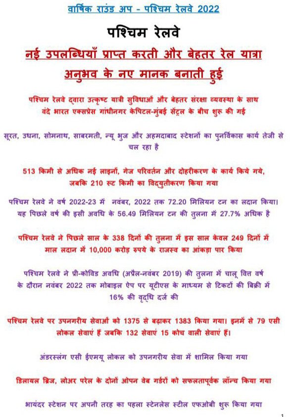 Uncategorisedपश्चिम रेलवे WR : वर्ष 2022 में उपलब्धियों की वार्षिक समीक्षा 31st Dec 2022 Rail Duniya Share this: Click to share on WhatsApp (Opens in new window) WhatsApp Click to share on X (Opens in new window) X Click to share on Facebook (Opens in new window) Facebook Click to share on Telegram (Opens in new window) Telegram Click to email a link to a friend (Opens in new window) Email Like Loading... Related Published by Rail Duniya Rail Duniya is a magazine publishing all India train timings since 1988. View all posts by Rail Duniya