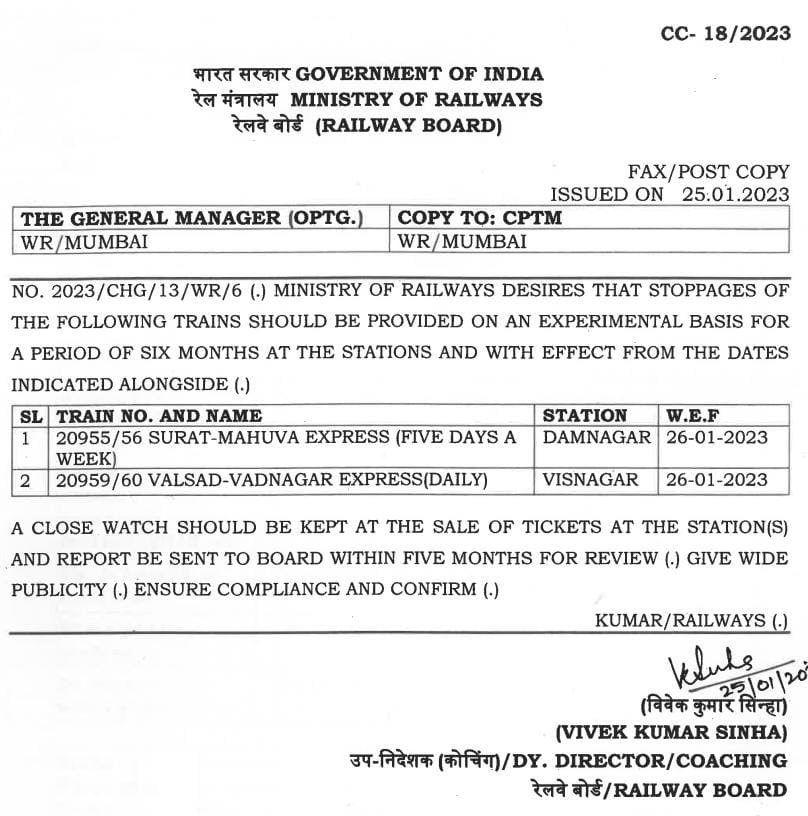 गौरतलब यह है, रेलवे बोर्ड के इस सम्बंध में लगभग 15 परिपत्रक है, और सारे स्टोपेजेस ‘एक्सपेरिमेंटल बेसिस’ पर अर्थात 6 महीने की प्रायोगिक अवस्थाओं में दिए गए है। कहते है न, ‘बकरे की अम्मा कब तक खैर मनाएगी?’ इन एक्सपेरिमेंटल पड़ावों वाले स्टेशन के यात्री रेल प्रशासन से पूछना चाहते है, आखिर कितने दिन यह एक्सपेरिमेंट चलना है? कब तक तसल्ली करना चाहती है रेलवे, की यह स्टोपेजेस यात्रिओंके लिए जरूरी है। ☺️