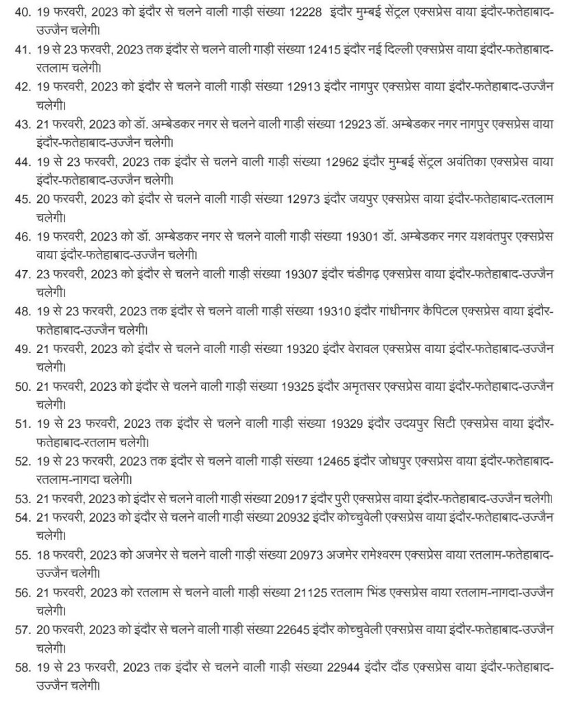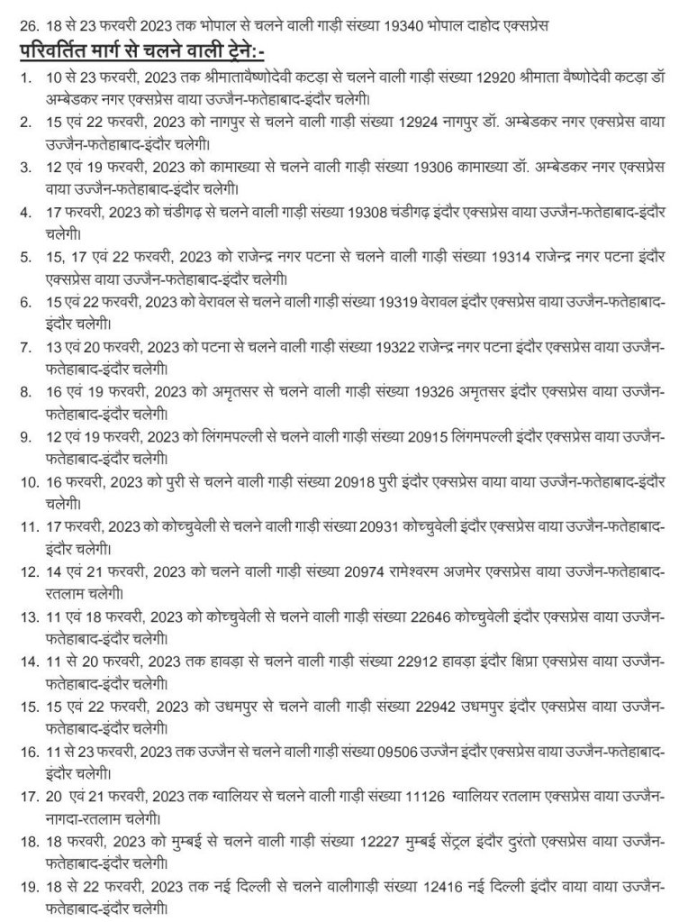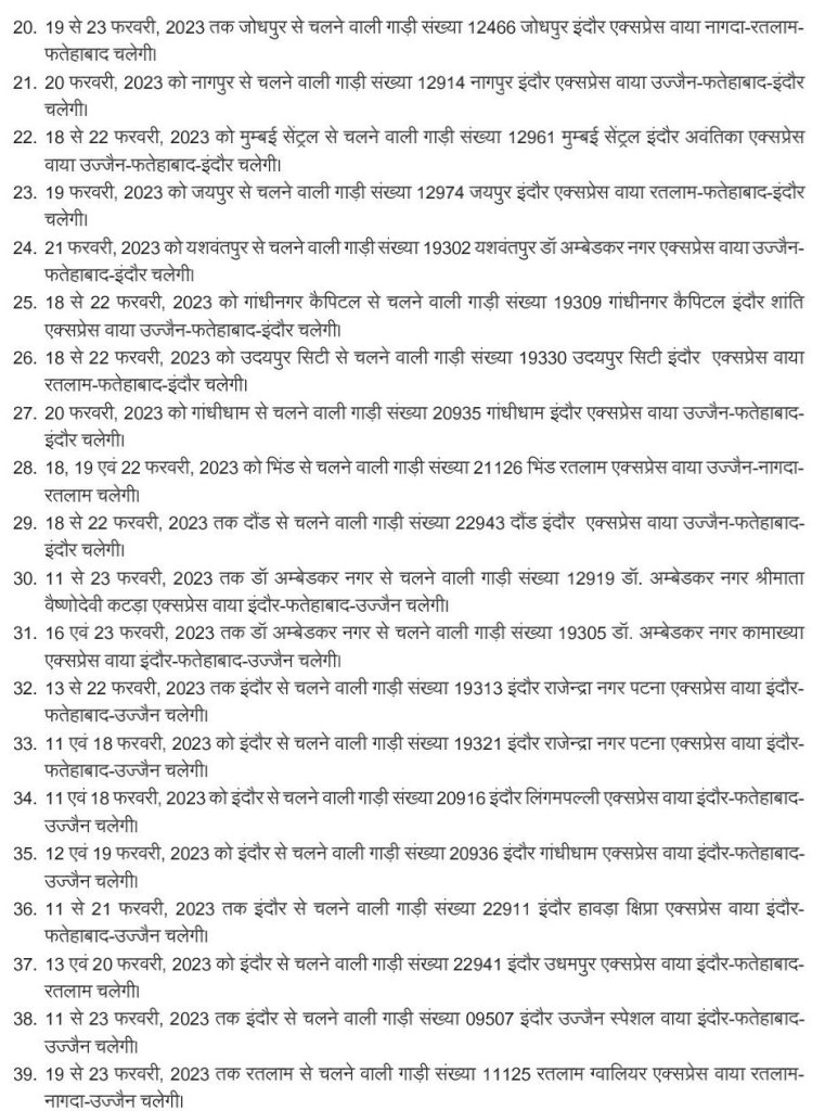 Uncategorisedइंदौर-देवास-उज्जैन खंड में दोहरीकरण हेतु प्रस्तावित ब्लॉक के कारण रतलाम मंडल की ट्रेने प्रभावित 10th Feb 2023 Rail Duniya Share this: Click to share on WhatsApp (Opens in new window) WhatsApp Click to share on X (Opens in new window) X Click to share on Facebook (Opens in new window) Facebook Click to share on Telegram (Opens in new window) Telegram Click to email a link to a friend (Opens in new window) Email Like Loading... Related Published by Rail Duniya Rail Duniya is a magazine publishing all India train timings since 1988. View all posts by Rail Duniya