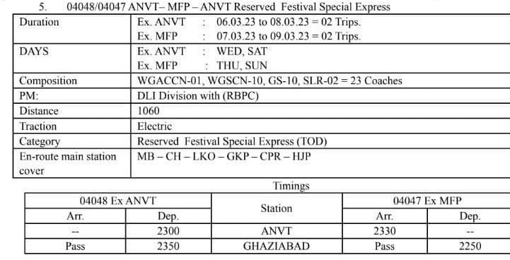 04048/47 आनंदविहार टर्मिनस – मुजफ्फरपुर – आनंदविहार टर्मिनस द्विसाप्ताहिक विशेष