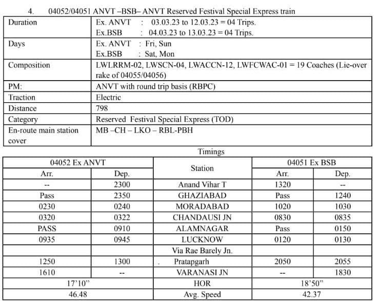 04052/51 आनंदविहार टर्मिनस – वाराणसी – आनंदविहार टर्मिनस द्विसाप्ताहिक विशेष