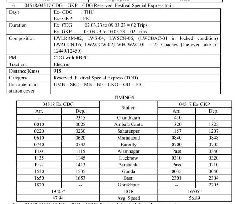04518/17 चंडीगढ़ – गोरखपुर – चंडीगढ़ साप्ताहिक विशेष