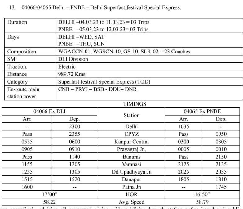 04066/65 दिल्ली – पटना – दिल्ली द्विसाप्ताहिक सुपरफास्ट विशेष