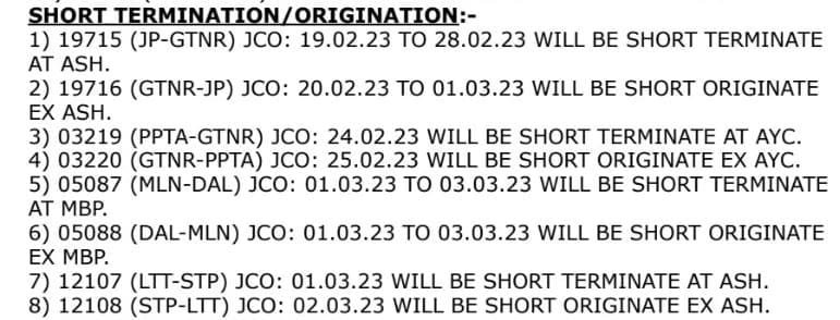 अंशतः रद्द अर्थात शॉर्ट टर्मिनेट/ओरिजिनेट रहनेवाली गाड़ियाँ :-