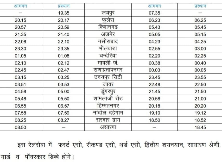 12981/82 जयपुर असरवा जयपुर प्रतिदिन सुपरफास्ट एक्सप्रेस दिनांक 03 मार्च से जयपुर से एवं 04 मार्च से असरवा से अपनी सेवा शुरू कर देगी।