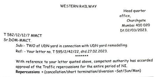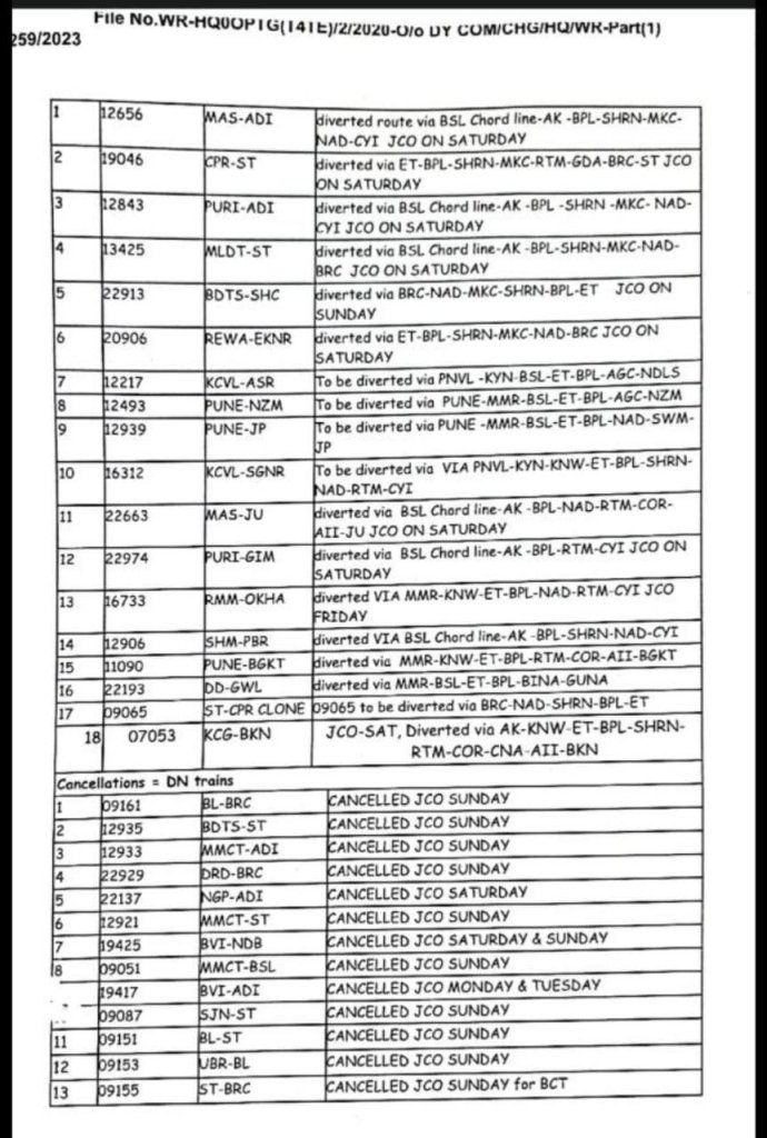 रेल प्रशासन को चाहिए, की रेल ब्लॉक के चलते गाड़ियाँ अपने प्रारम्भिक स्टेशन से सम्पूर्णतः रद्द की जाती है तब तो ठीक है मगर परावर्तित मार्ग से चले तो गाड़ी कौनसे मार्ग से चलेगी और कौनसे नियमित स्टोपेजेस स्किप अर्थात छोड़ते हुए चलेगी इसकी समुचित जानकारी यात्री को दी जानी चाहिए। मात्र इस तरह के परिपत्रक निकाल (वह भी गलत जानकारी युक्त) यात्रिओंके हाल बदतर ही होना है।