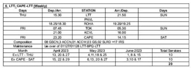 6: लोकमान्य तिलक टर्मिनस – कन्याकुमारी – लोकमान्य तिलक टर्मिनस साप्ताहिक विशेष