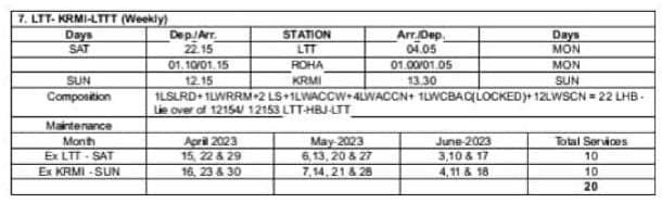 7: लोकमान्य तिलक टर्मिनस – करमाली – लोकमान्य तिलक टर्मिनस साप्ताहिक विशेष