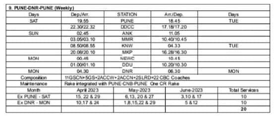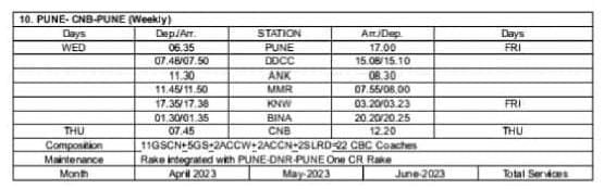 10: पुणे – कानपुर – पुणे साप्ताहिक विशेष