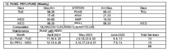12: पुणे – प्रयागराज – पुणे वातानुकूलित साप्ताहिक विशेष