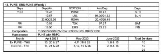 13: पुणे – एर्नाकुलम – पुणे साप्ताहिक विशेष