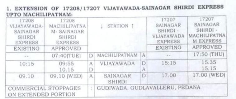 1:17208 विजयवाड़ा – शिर्डी साप्ताहिक आरक्षण 4 अप्रैल के बाद निलंबित,