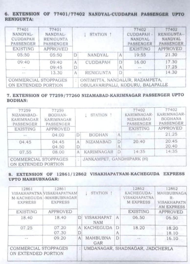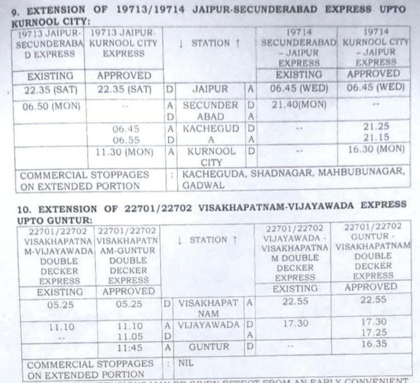 ध्यान दें उपरोक्त सभी गाड़ियोंको विभिन्न प्रस्थान स्टेशनोंसे विस्तारित किया गया है। आइए, हम इससे जुड़े परिपत्रक देखते है।