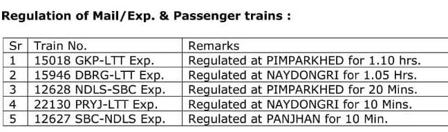 12618 निजामुद्दीन एर्नाकुलम मंगला एक्सप्रेस JCO 29/5/2023 अपने नियमित मार्ग से भुसावल आने के बाद आगे जलगाँव, उधना, वसई रोड होकर रोहा पहुंच अपने नियमित मार्ग से आगे एर्नाकुलम की ओर चलेंगी। इस दौरान मनमाड़, नासिक, कल्याण एवं पनवेल स्टेशन्स स्किप होंगे।