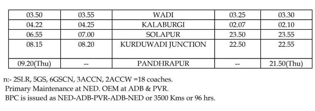 01209/10 मिरज – पंढरपुर – कुरडूवाड़ी – पंढरपुर – मिरज विशेष ; 01209 मिरजेहुन दिनांक 24 जून ते 03 जुलै पर्यन्त दररोज, 01210 कुरडूवाड़ी, पंढरपुर हुन 24 जून ते 03 जुलै पर्यन्त दररोज सूटेल.
