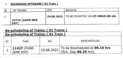 मार्ग परिवर्तन कर चलनेवाली गाड़ी एवं अपने प्रारम्भिक स्टेशन से रिशेड्यूल होकर चलनेवाली गाड़ी :