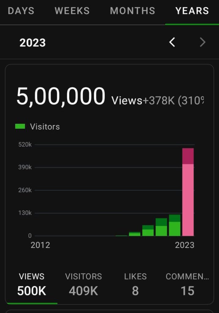 मित्रों, ‘रेल दुनिया’ एक वेब फॉर्म में वर्ष 2018 से आपकी सेवा में उपलब्ध है। शनै शनै इसके वह्यूज़ और सपोर्टर बढ़ते गए और इस कैलेंडर वर्ष में, जनवरी 2023 से अगस्त तक ही हमने पाँच लाख वह्यूज़ के आंकड़े को छू लिया है। यह सारा श्रेय हमारे पाठकोंके असीम प्यार और सपोर्ट को जाता है। इस अवसरपर कुछ ‘मन की बातें’ आज हम भी आपसे करना चाहते है।
