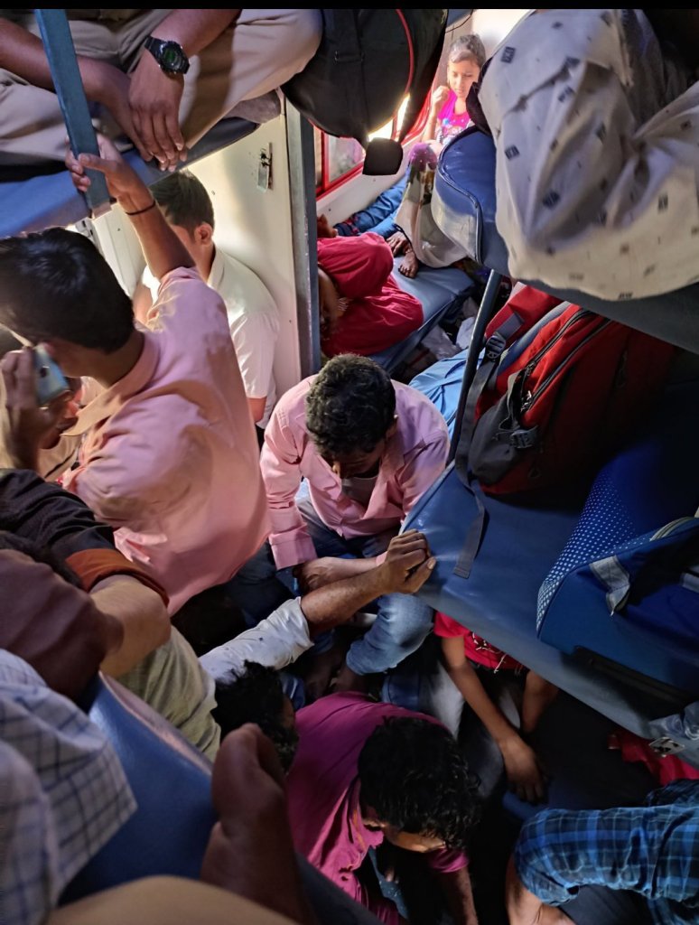 मित्रो, बहुतांश यात्री स्टेशनोंपर साधारण टिकट लेकर पहुंचते है। उन्हें स्लिपर क्लास की आरक्षित टिकट नहीं मिल पाई और न ही वह साधारण द्वितीय वर्ग में यात्रा कर अपने परिवार को साथ लेकर यात्रा कर पाने में सक्षम होता है। फिर… फिर शुरू होता एक ऐसा भद्दा खेल, रेल कानून की खुलेआम धज्जियां उड़ती, जो दिखती सभी को है, आरक्षित यात्री उसे भुगतता भी है मगर रेल विभाग के मंत्रियों से लेकर विभाग के अफसर, कर्मी, सुरक्षा बल सारे के सारे आँख मुन्द लेते है।