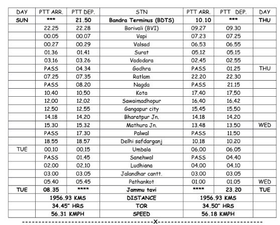 2: 09097/98 बान्द्रा टर्मिनस जम्मूतवी बान्द्रा टर्मिनस साप्ताहिक वातानुकूल सुपरफास्ट