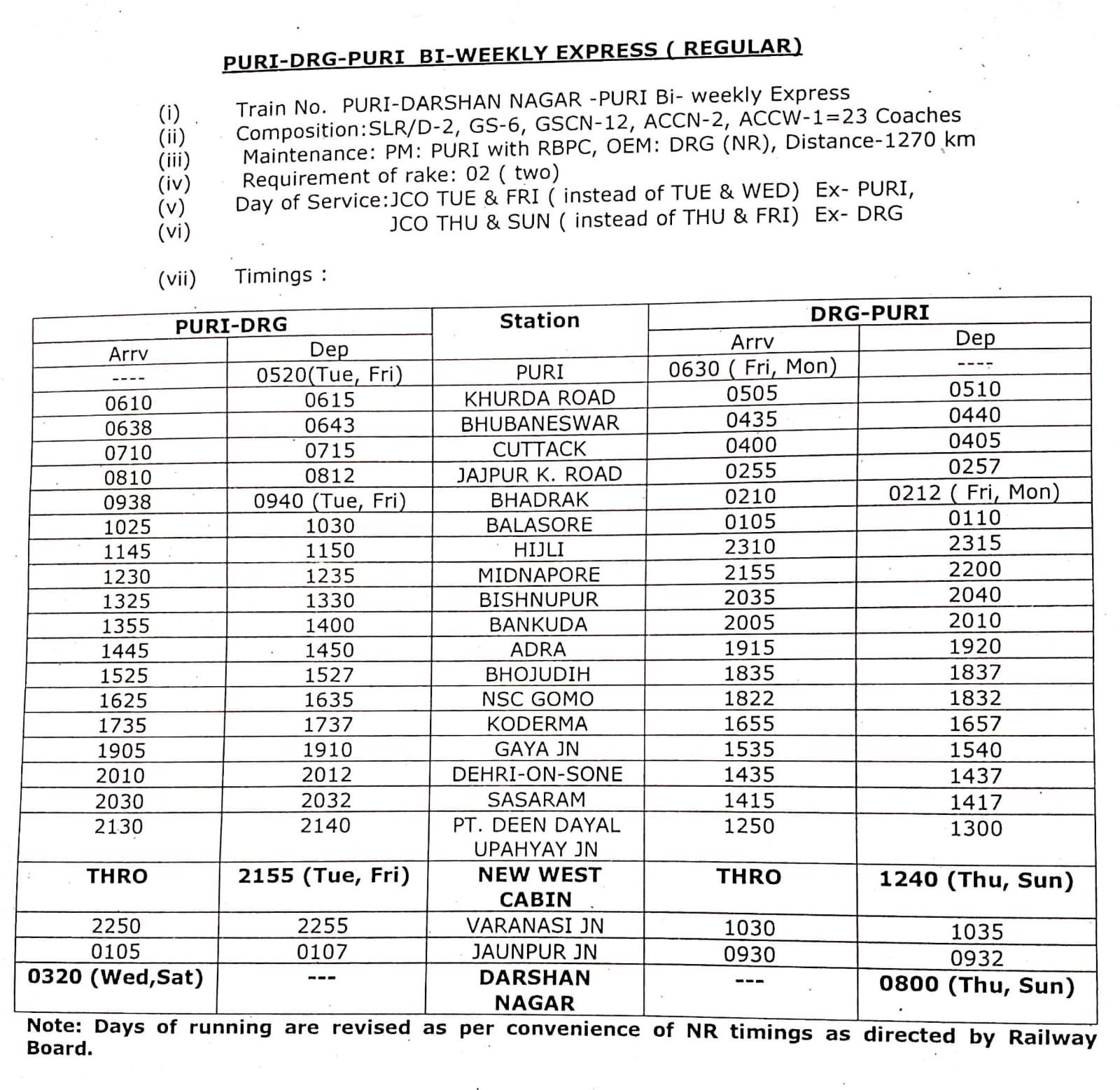 पुरी दर्शननगर पुरी द्विसाप्ताहिक विशेष