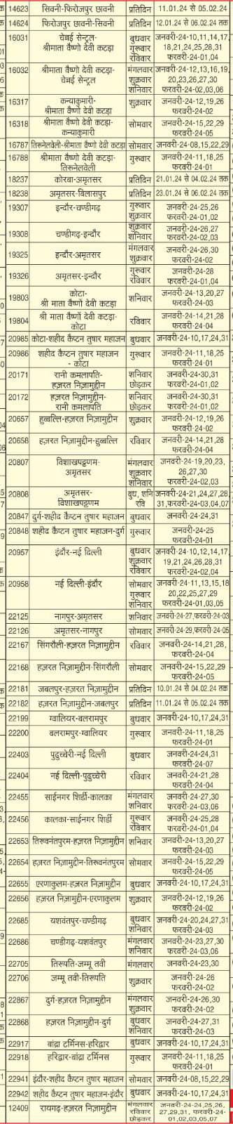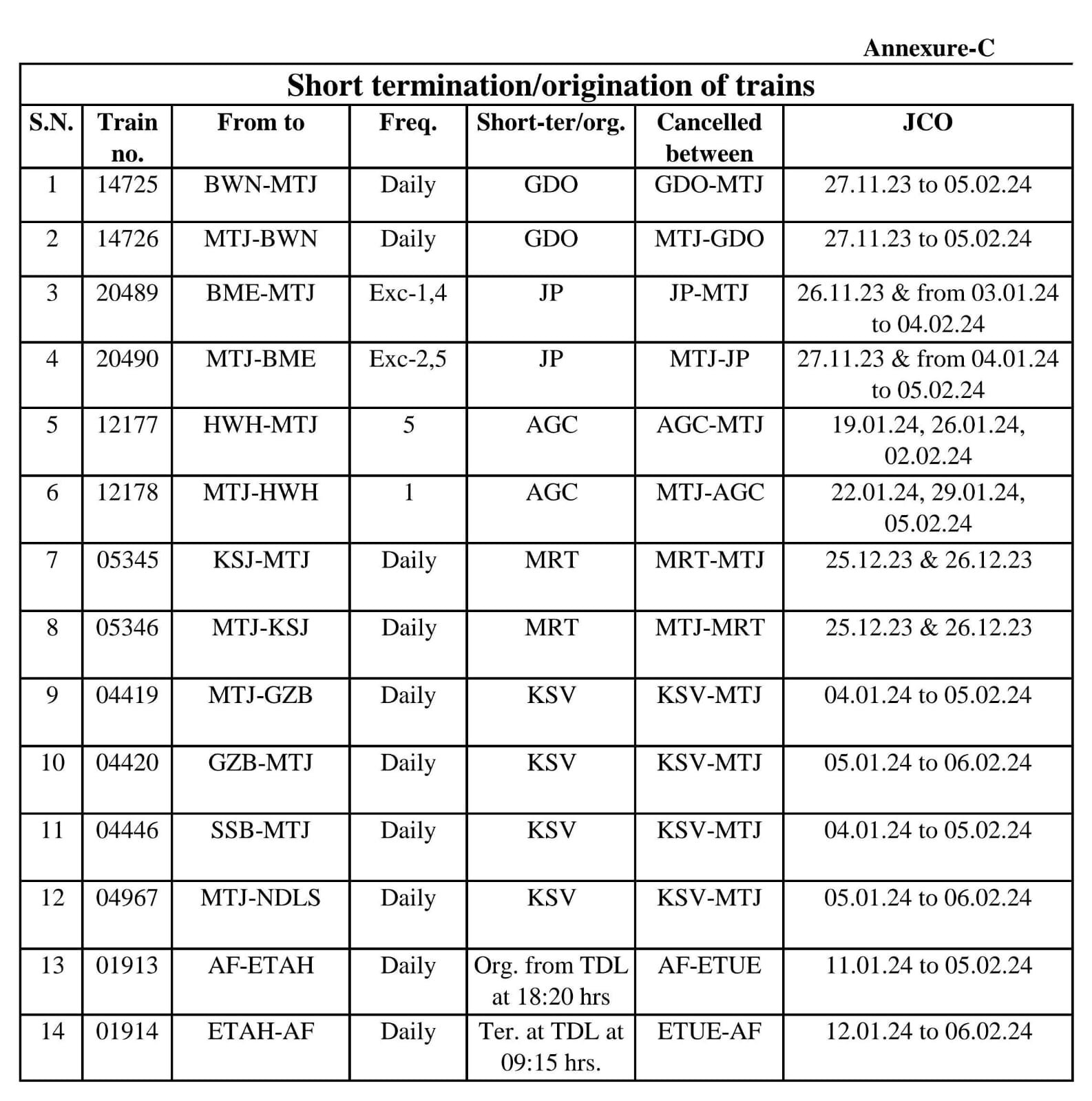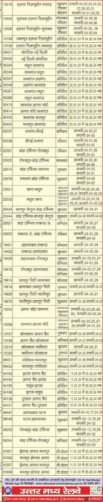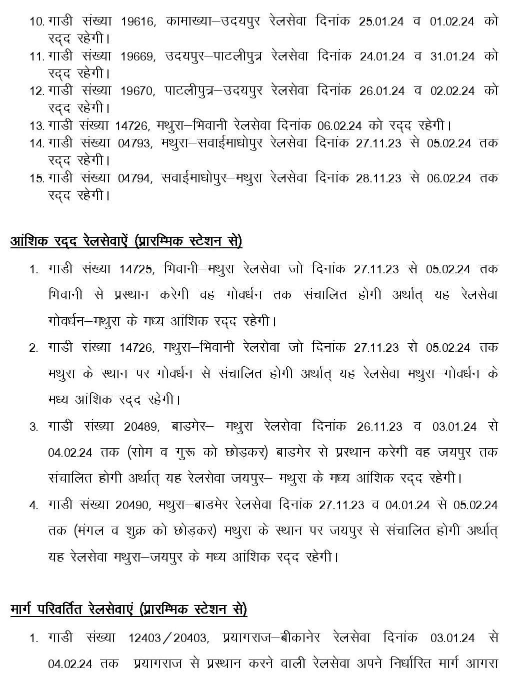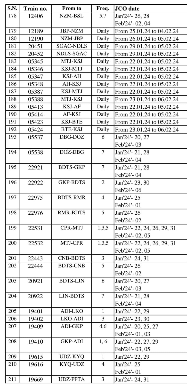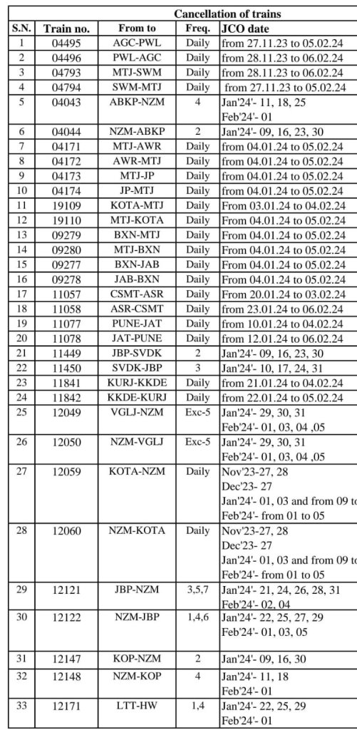 14 गाड़ियाँ आँशिक रद्द रहेगी :