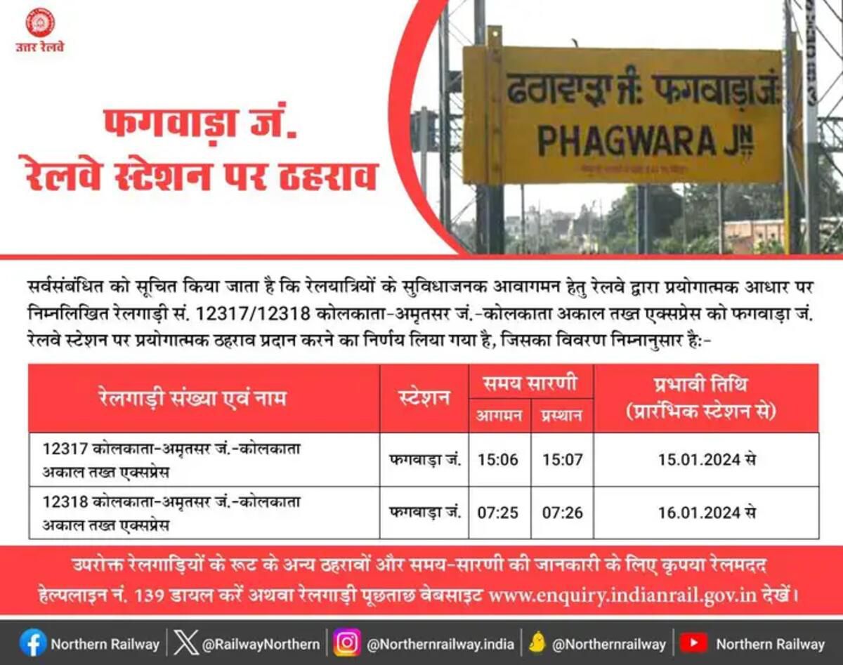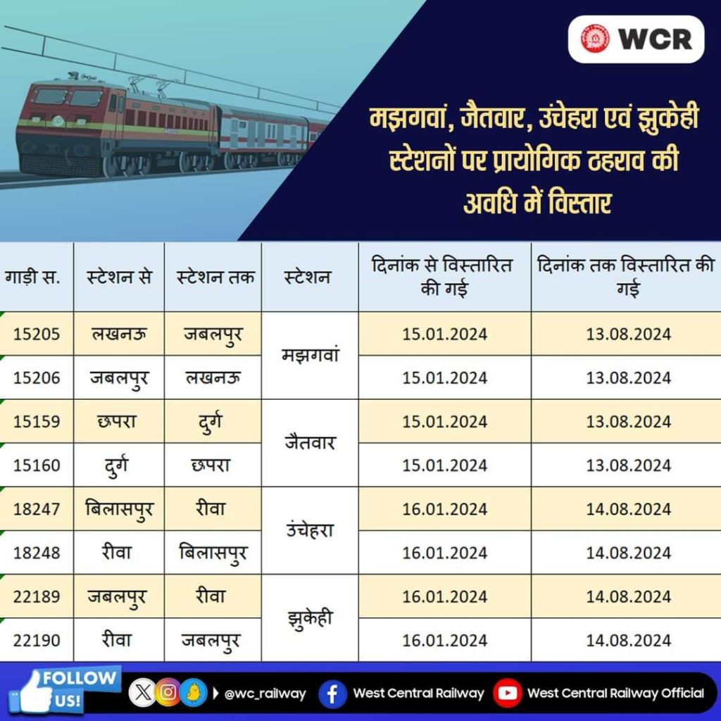 (उपरोक्त स्टॉपेज अस्थाई रूप से 6 महीने की अवधि के लिए दिए गए है।)