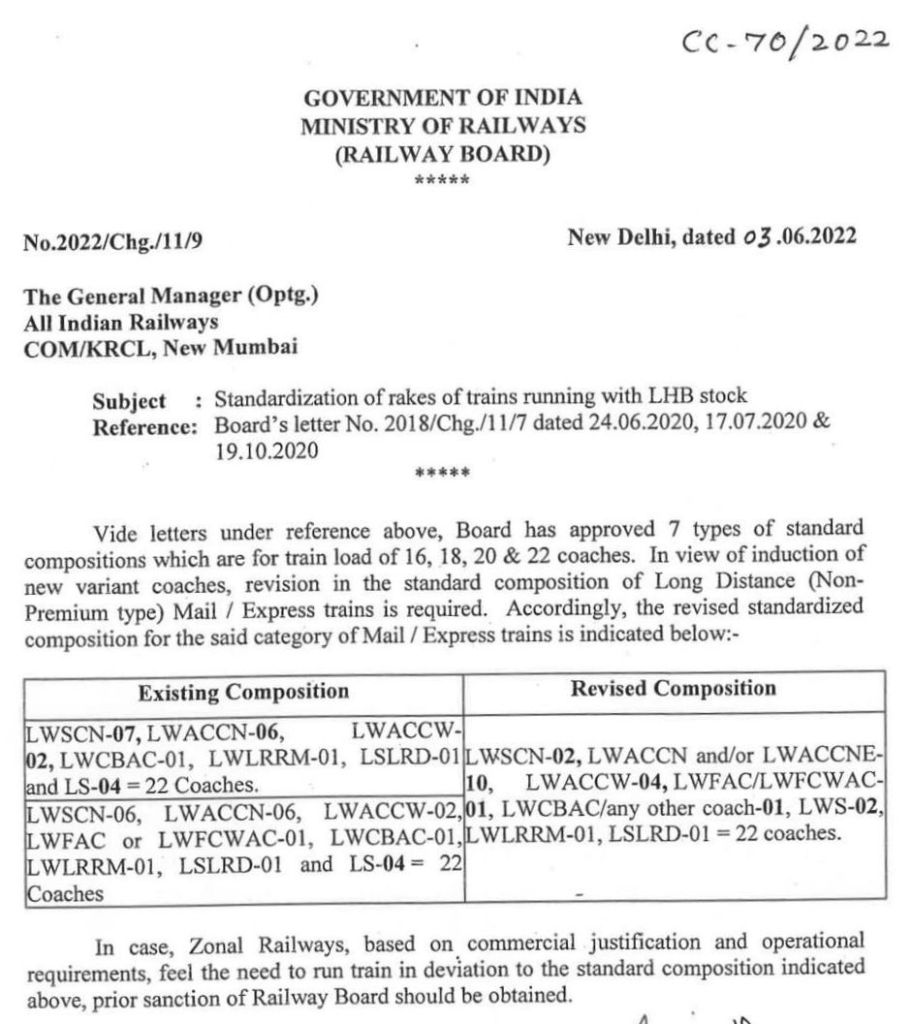 गाड़ी कोच संरचना के मानकीकरण में किया जा रहा है यात्री आवश्यकता नुसार बदलाव