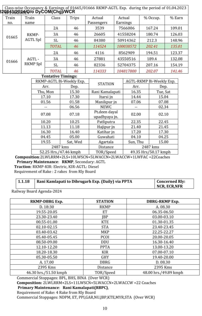16: रानी कमलापति अगरतला रानी कमलापति द्विसाप्ताहिक (पूर्व विशेष गाड़ी क्रमांक 01666/67 साप्ताहिक विशेष से परिचालित)
