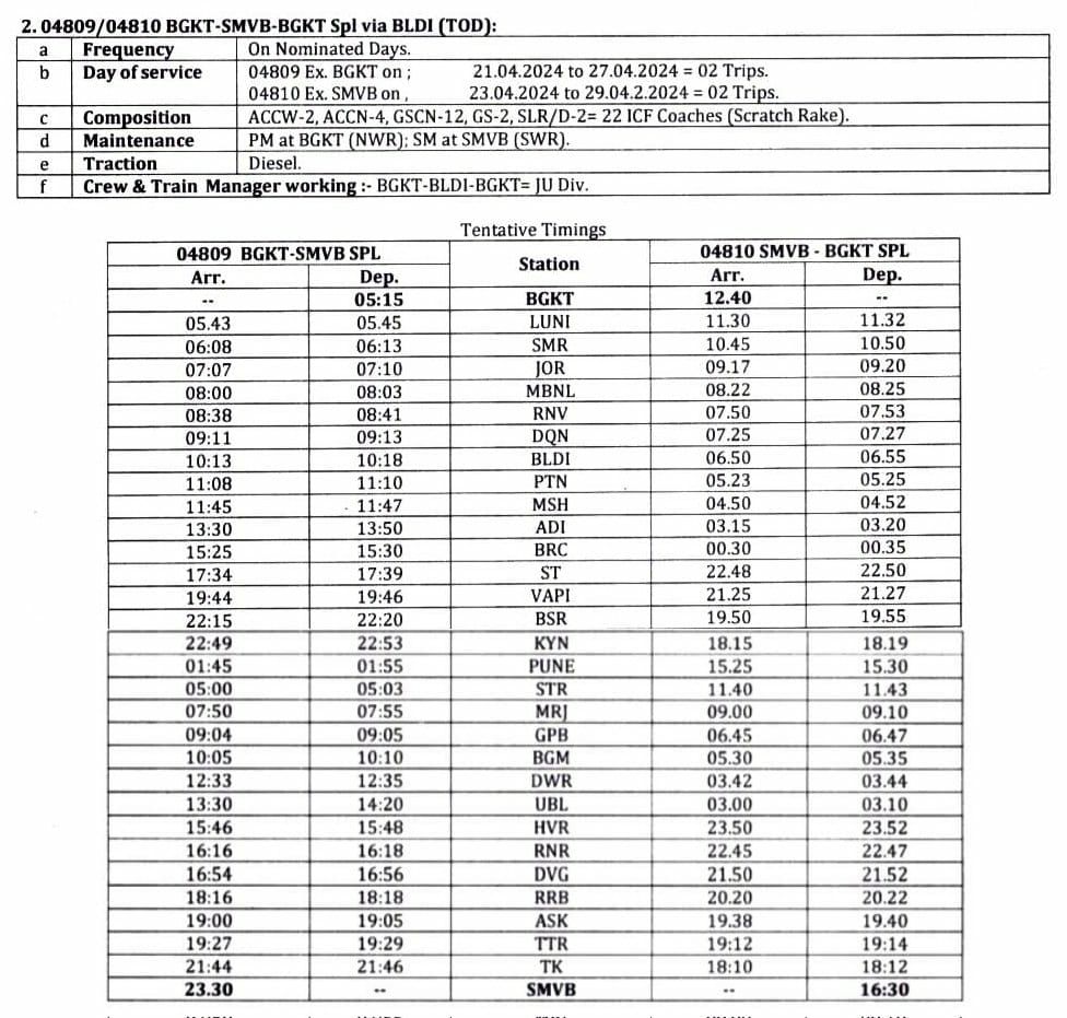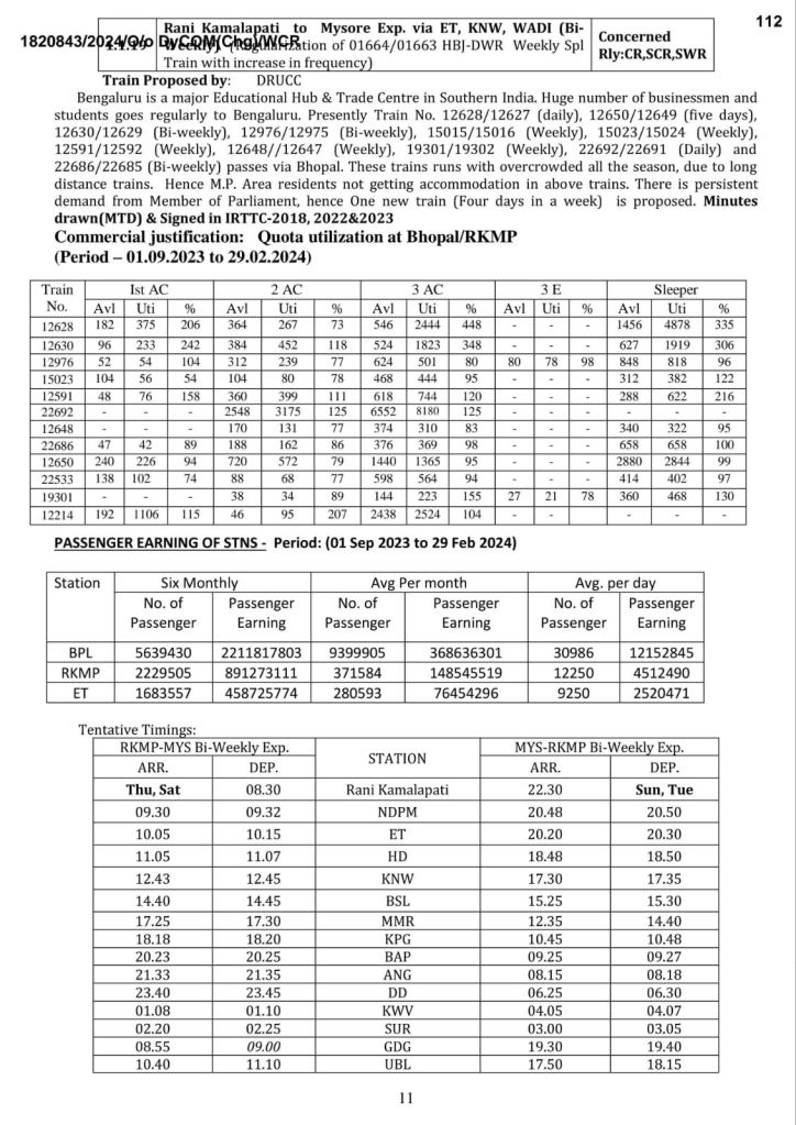 18: रानी कमलापति मैसूरु रानी कमलापति द्विसाप्ताहिक, वाया भुसावल, दौंड, सोलापुर, गदग, हुब्बाली, बेंगलुरु