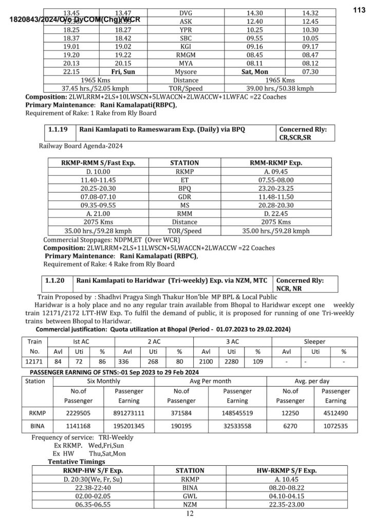 20: रानी कमलापति हरिद्वार रानी कमलापति त्रिसाप्ताहिक, वाया निजामुद्दीन