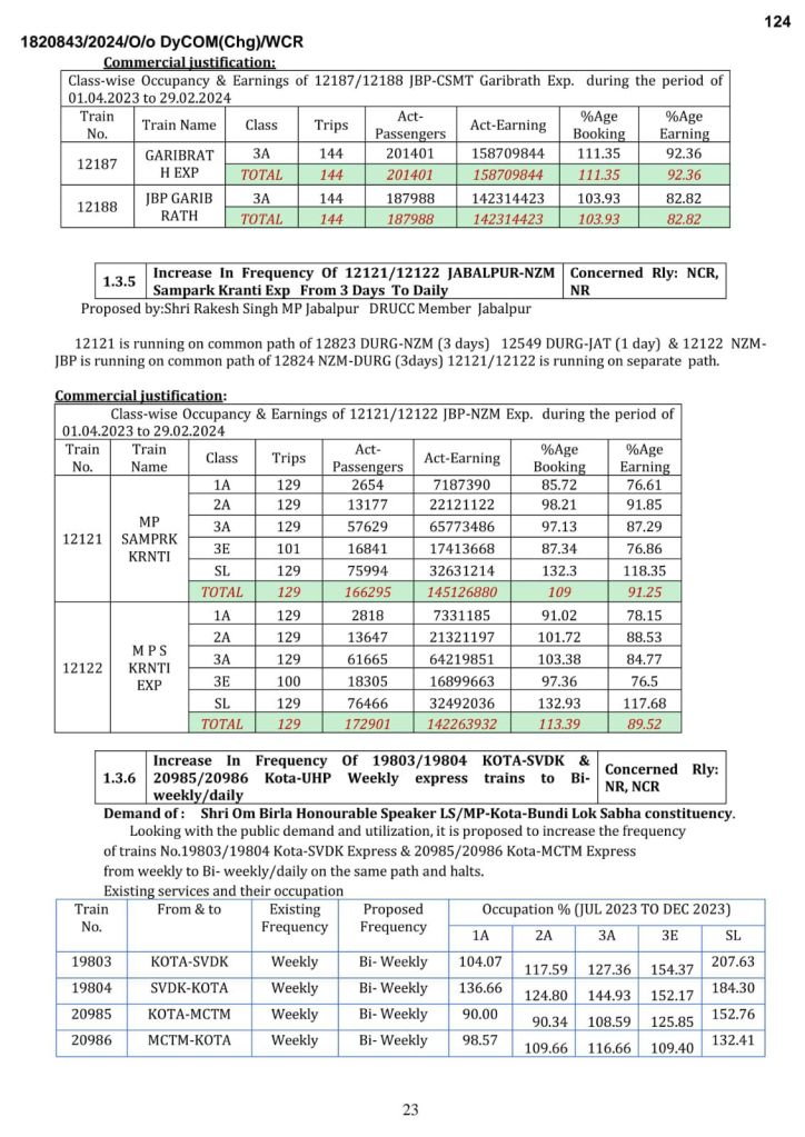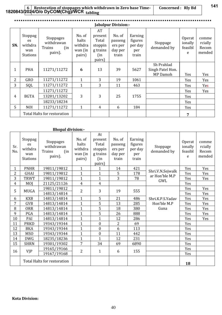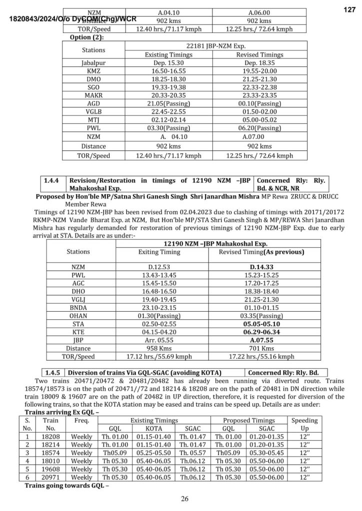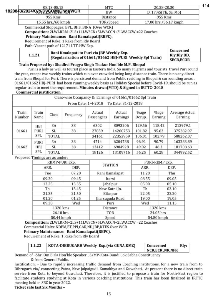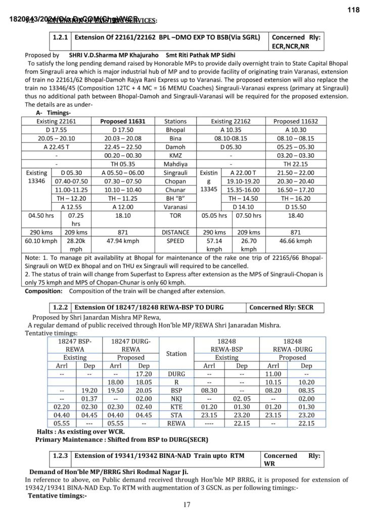 पश्चिम मध्य रेल ने 25 नई गाड़ियोंका प्रस्ताव रखा है। साथ ही 08 गाड़ियोंके मार्ग का विस्तार और 06 गाड़ियोंके फेरे बढाने की अपनी माँग भारतीय रेल समयसारणी समिति के वार्षिक मीटिंग में रखी है। आइए, देखते है…