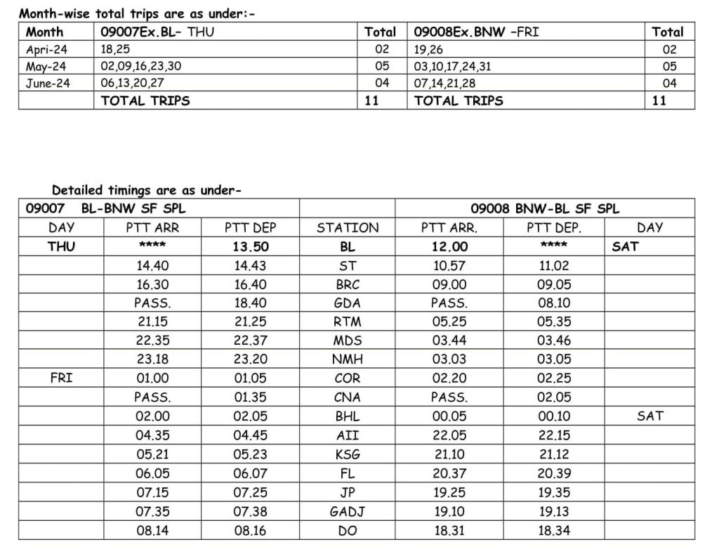 यात्रीगण ज्ञात रहे, विशेष गाड़ियोंमे अतिरिक्त किराया दर लागू रहते है।