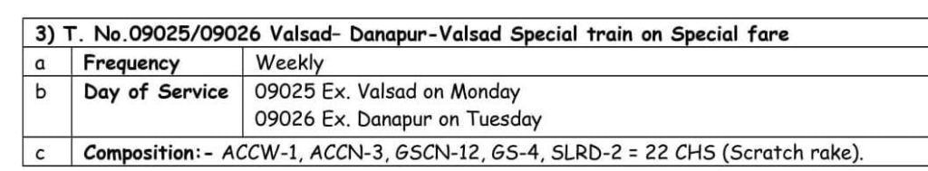 3: 09025/26 वलसाड दानापुर वलसाड साप्ताहिक विशेष वाया भुसावल, प्रयागराज छिंवकी