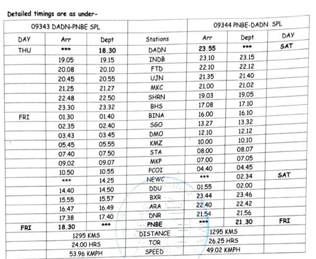 09343/44 डॉ आंबेडकर नगर महू पटना डॉ आंबेडकर नगर महू साप्ताहिक विशेष वाया इन्दौर, उज्जैन, सन्त हिरदाराम नगर, बीना, कटनी मुरवाड़ा, प्रयागराज छिंवकी, पण्डित दीनदयाल उपाध्याय जंक्शन