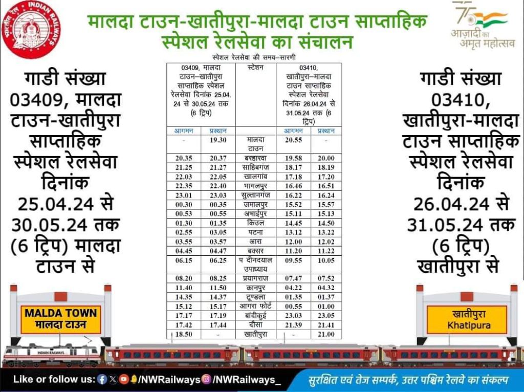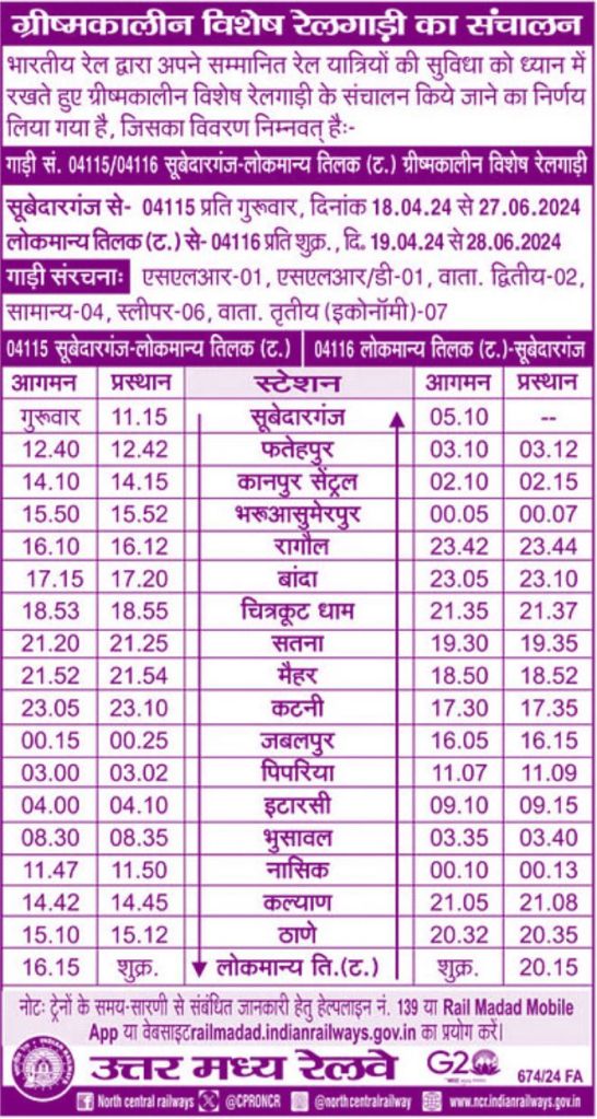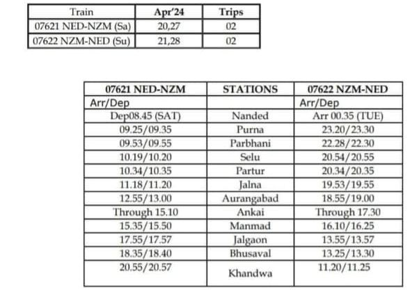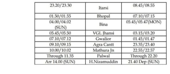 07621/22 नान्देड़ निजामुद्दीन नान्देड़ साप्ताहिक विशेष वाया मनमाड़, भुसावल, भोपाल, झाँसी, मथुरा