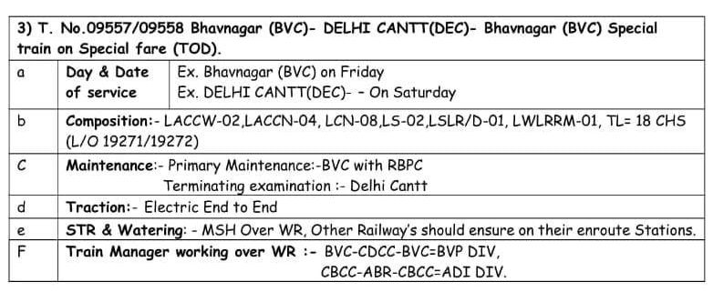 09557/58 भावनगर दिल्ली कैंट भावनगर साप्ताहिक TOD विशेष