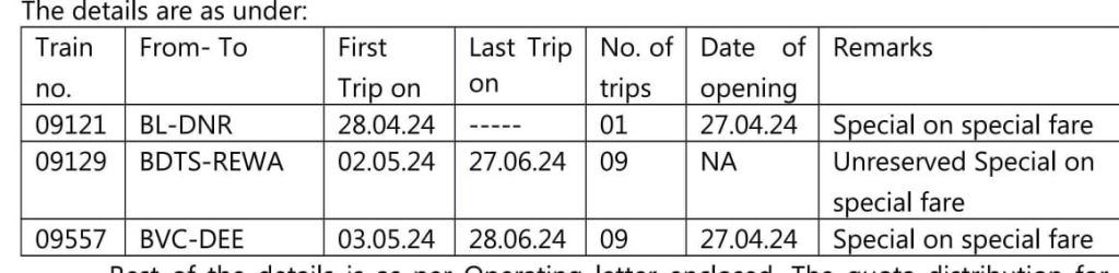 09129/30 बान्द्रा टर्मिनस रीवा बान्द्रा टर्मिनस साप्ताहिक अनारक्षित विशेष वाया भेस्तान, भुसावल, इटारसी, सतना