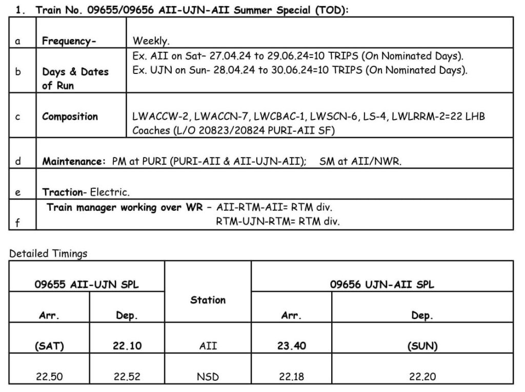 09655/56 अजमेर उज्जैन अजमेर TOD विशेष, वाया चित्तौड़ गढ़, रतलाम, फतेहाबाद